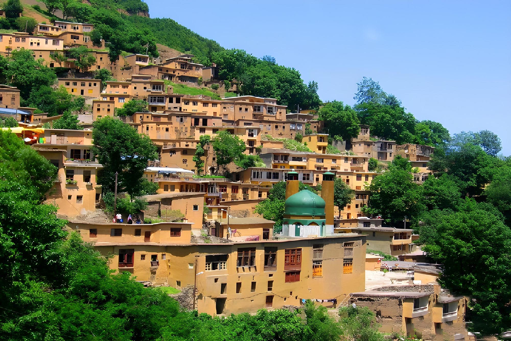 روستای پلکانی با معماری خاص، مناسب برای عکاسی از مناظر روستایی و فرهنگ محلی مردم.